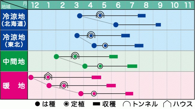 - 作型は広く、ハウス・トンネル・露地栽培に適する。