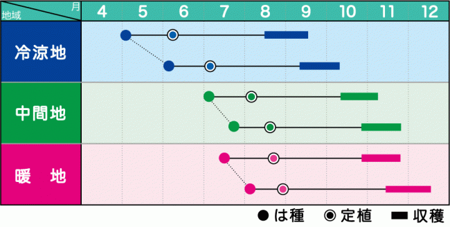 - 耐暑性があり生育の揃いがよい寒玉キャベツ。
