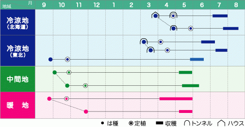- 収穫期は「陵西一寸」よりやや遅い中早生品種。草勢強くスタミナがあり、収量性に優れる。