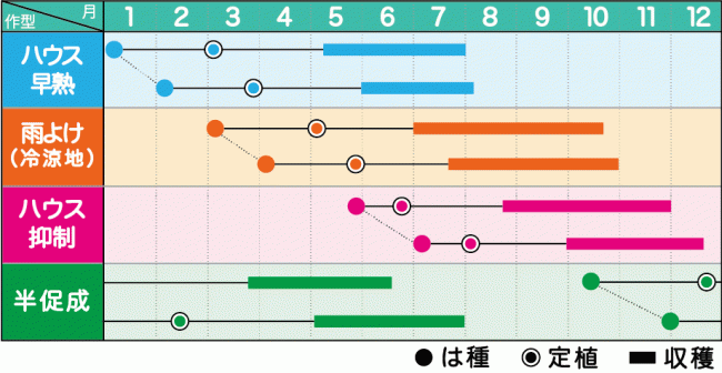 - やや若苗定植をしてスムーズな活着で初期生育を促す。