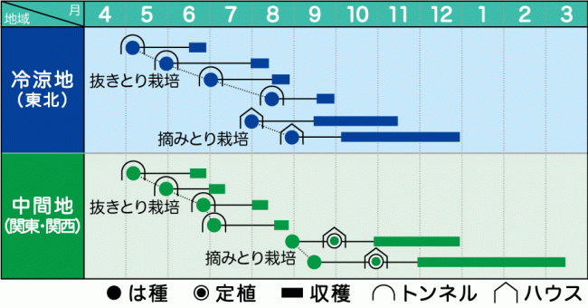 立性でやや大きめの光沢のある葉で、茎の空洞や芯の発生が少なく柔らかい。