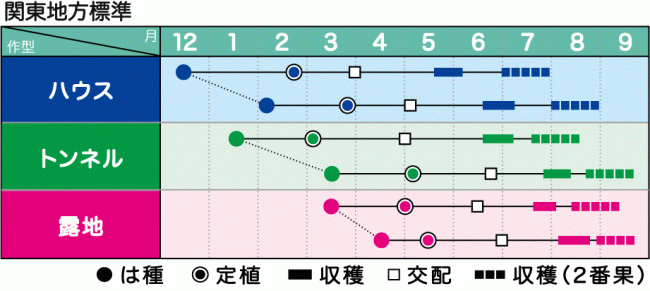 - 収量を確保するために低節位の交配は避け、必ず17~23節付近の3~4番の雌花を用いる。