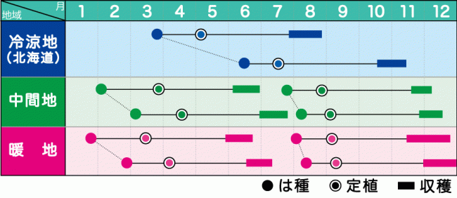 - 球色は鮮赤色で中心の色も同色。丸形で球重1.5~2.0kgとなる。球は緻密にしまり、葉肉は厚くて柔らかく、甘みが多くて美味。裂球は遅い。
