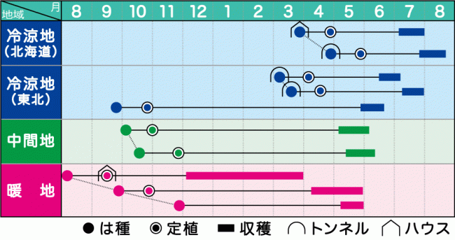 4.本葉5枚位までは寒さに強いが、それ以降は耐寒性弱く、花芽分化すると-5℃で枯死する。