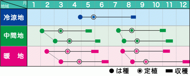 遅まきするとアントシアンの発生が懸念されるため播種期を守る。