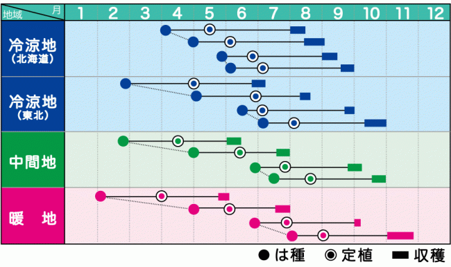- 春まき、初夏まきで作りやすい極早生の味のよい代表品種。小ぶりなので密植可能。