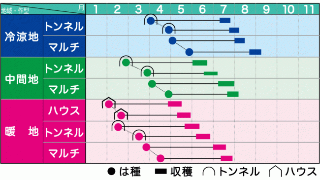 - トンネル・ハウス栽培の場合はできるだけ換気と採光をよくするよう心がける。
